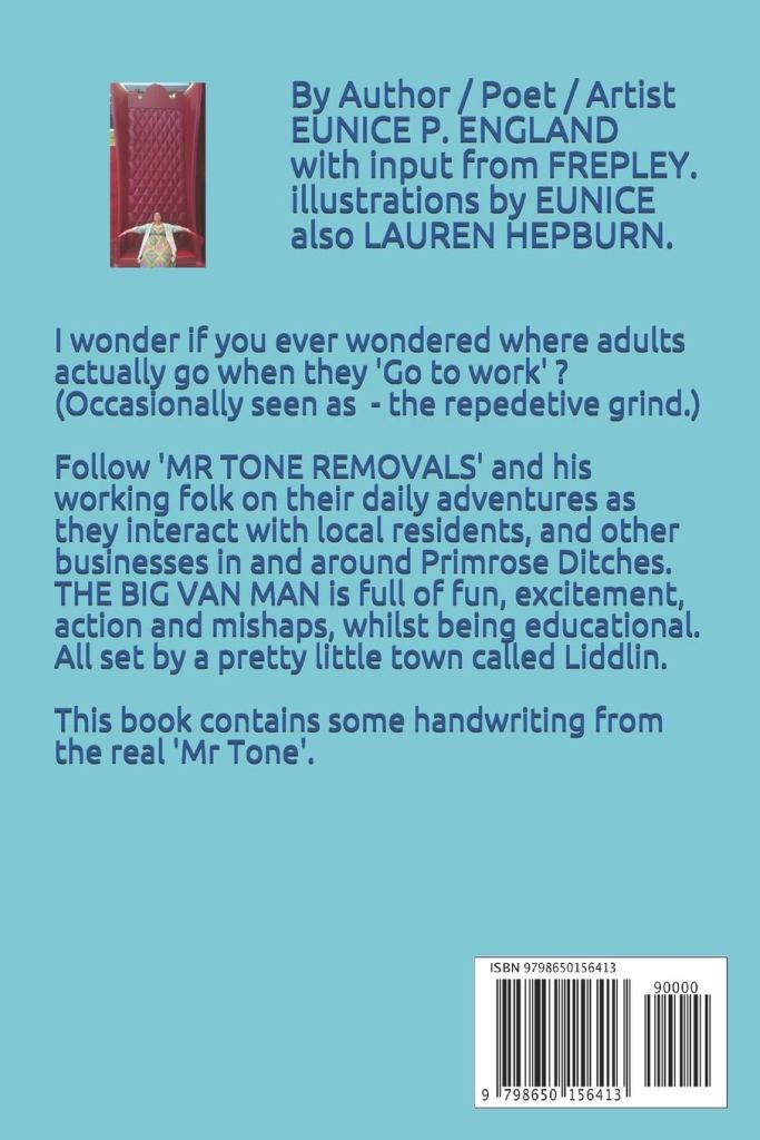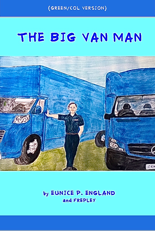 I HAVE CREATED THIS ‘GREEN AND COLOURS’ VERSION OF ‘THE BIG VAN MAN’ TO ATTEMPT TO HELP PERSONS WITH DYSLEXIA ENJOY AN EASIER READING EXPERIENCE. IT MAY ALSO BE OF HELP TO SOME PERSONS WITH VARIANTS OF MENTAL HEALTH. I AM NOT TRAINED IN EITHER AREA, BUT HAVING TALKED TO AND LISTENED TO SUGGESTIONS FROM PERSONS AS TO WHAT THEY WOULD LIKE TO SEE, TO CREATE AN EASIER READING EXPERIENCE. I HAVE COME UP WITH THIS CAREFULLY CONSIDERED VERSION. YOU MAY LOOK AND THINK IT IS JUST A RANDOM RAINBOW VERSION, IN FACT IT IS FAR MORE CONSIDERED THAN THAT. I REALISE THIS VERY COLOURFUL VERSION WILL NOT BE FOR EVERYONE, DESPITE THE FACT IT IS FOR ANYONE. BUT, REGULAR READING BOOKS WILL NOT BE FOR EVERYONE, DESPITE THE FACT THAT THEY ARE MEANT FOR EVERYONE. MY AIM IN ADAPTING THIS BOOK IS FOR EVEN GREATER INCLUSIVITY. I REALISE THERE ARE AUDIOBOOKS THAT CAN HELP, YET NOT EVERYONE HEARS WELL. I DO HOPE THAT SOME PERSONS BIG OR SMALL, MAY BE ABLE TO ENJOY THE READING EXPERIENCE OFFERED HERE. AS FAR AS I KNOW, THIS IS THE FIRST BOOK IN THE WHOLE WORLD, FORMULATED EXPRESSLY THIS PARTICULAR WAY, TO HELP PEOPLE WITH DYSLEXIA, ETC..